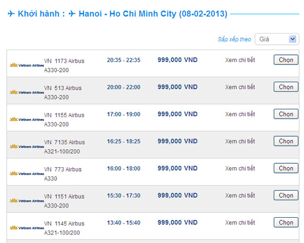 Một số chuyến bay nổi bật của Vietnam Airlines: