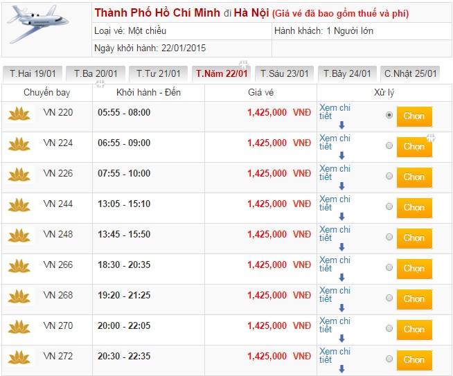 Một số chuyến bay nổi bật của Vietnam Airlines: